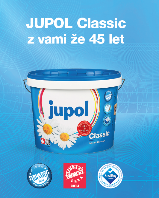 JUB letos praznuje častitljivih 45 let blagovne znamke JUPOL. Disperzijska notranja barva, ki je nastala leta 1969, je JUB-ova najmočnejša blagovna znamka in tudi največja prodajna uspešnica, saj jo pri nas danes kupi kar sedem od desetih kupcev, z njo pa letno prebarvamo kar 200 milijonov kvadratnih metrov zidnih površin.