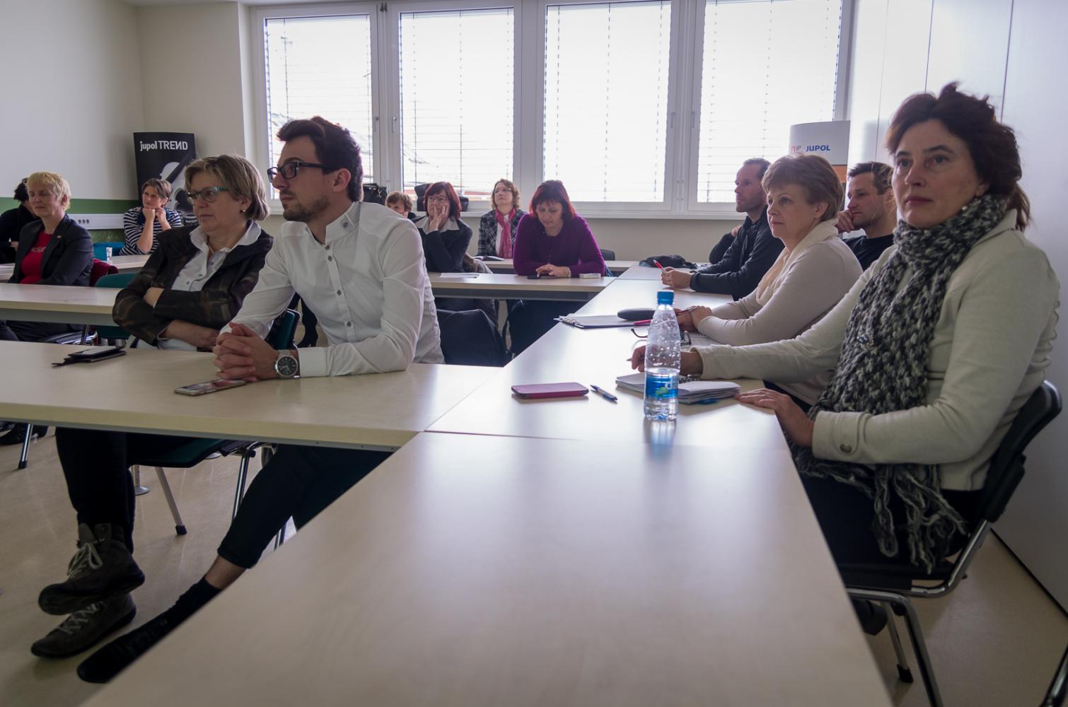 Udeleženci so se sprehodili tudi čez obrat, v katerem JUB proizvaja stiropor, nato pa se je srečanje nadaljevalo v sproščenem ozračju na pogostitvi v JUB Design Studiu, ki je hkrati tudi JUB-ov razstavni salon, v katerem si lahko stranke ogledajo JUB-ove inovativne ideje in celovite rešitve za preureditev doma.