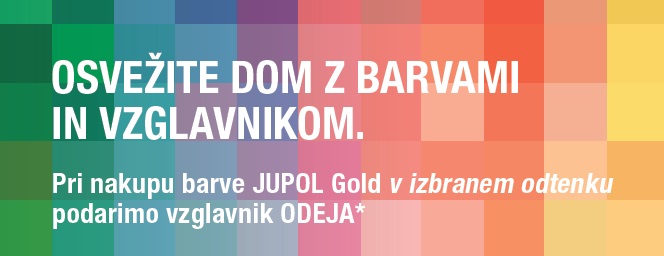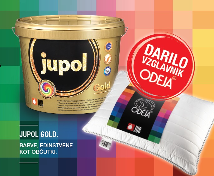 Vsem kupcem, ki bodo v času od 25. aprila do 18. junija 2016 kupili barvo JUPOL Gold v izbranem odtenku po barvni karti, bomo podarili čudovito mehak vzglavnik ODEJA.